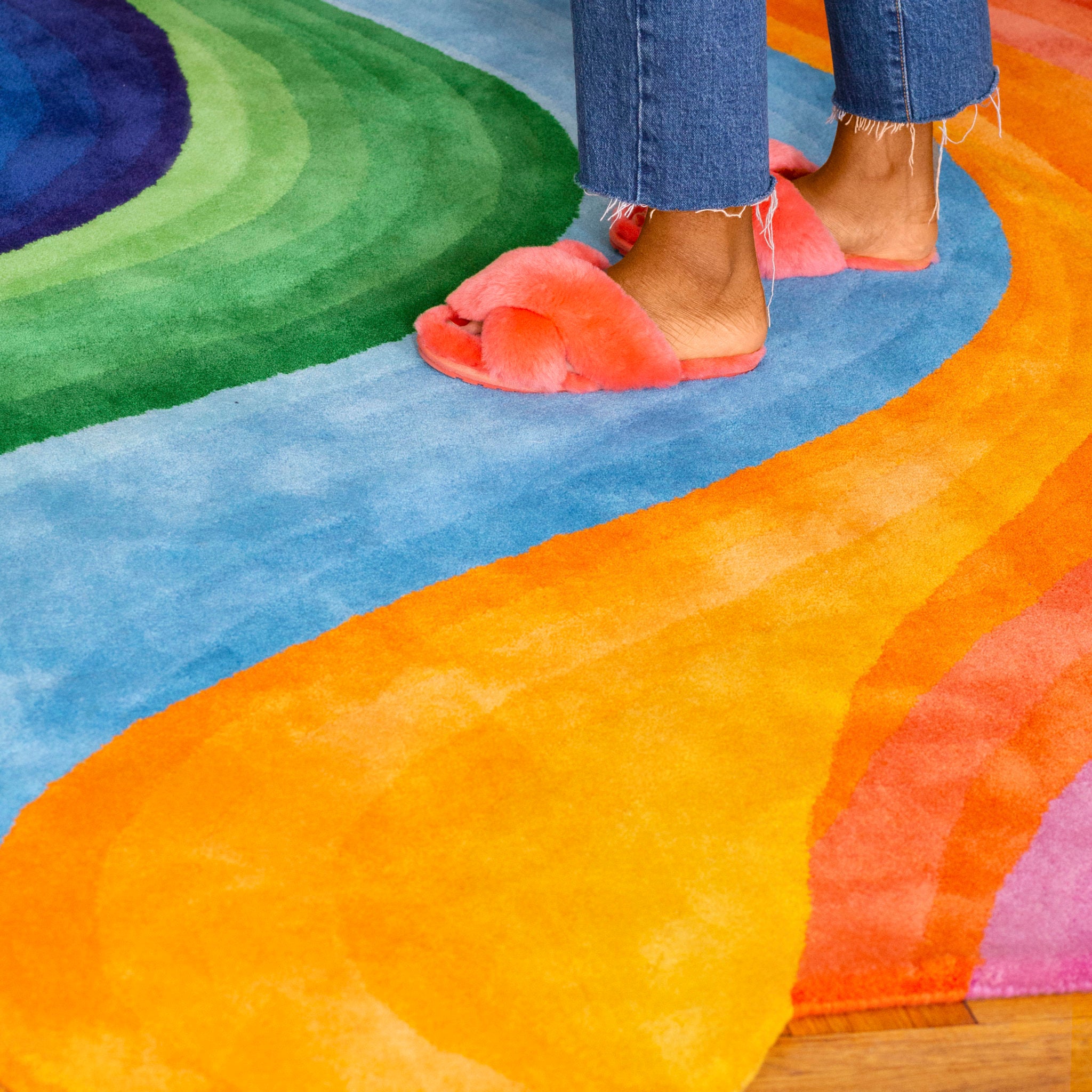 Jade designs a radiant rug filled with bold colors and fluid shapes for London based rug brand Sonya Winner.