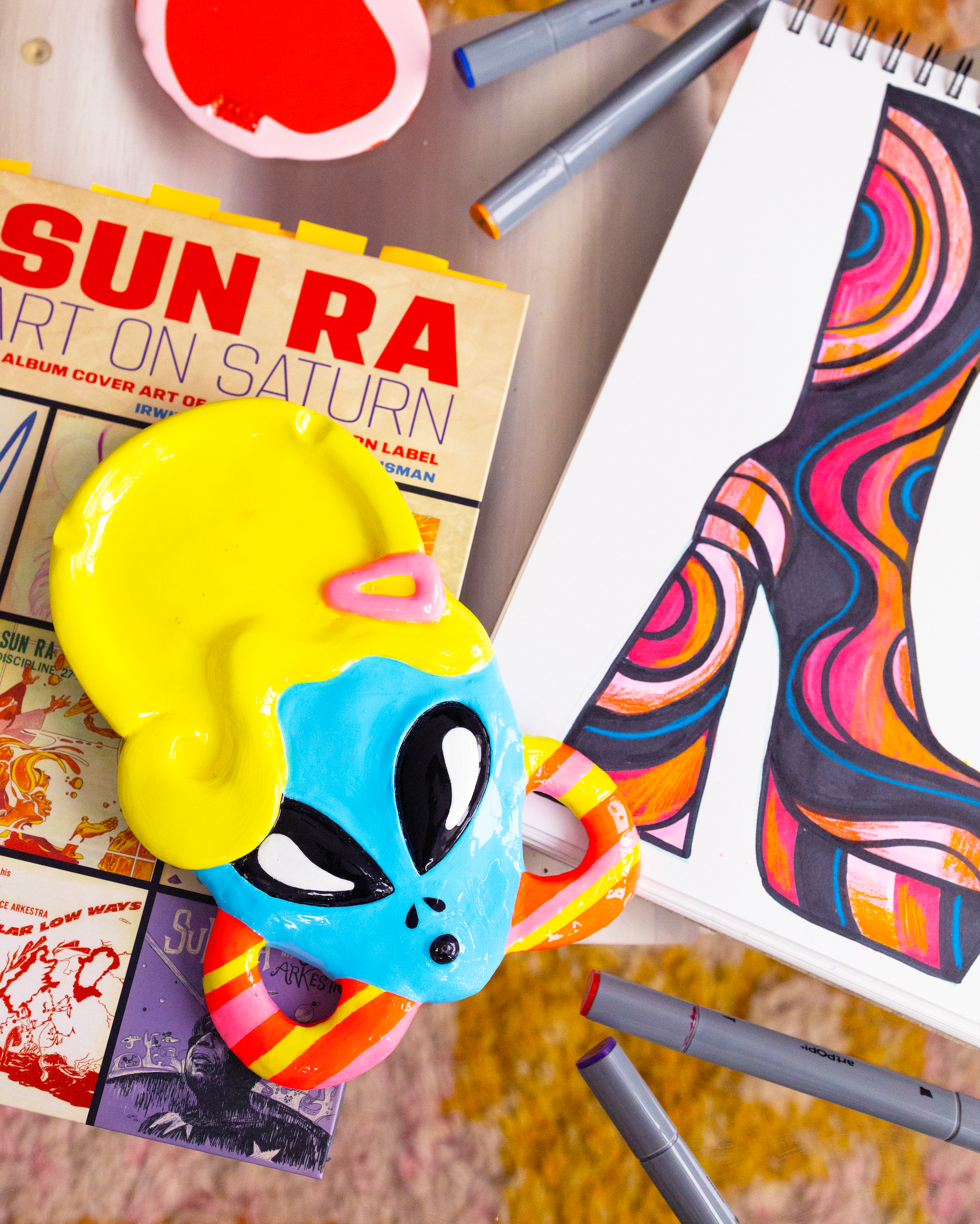 While her work radiates bright, bold energy, JPB is also drawn to the inner work behind that confidence. She reflects on how Black women shape their own sense of beauty and belonging in a world that doesn’t always affirm it. Her newer pieces draw from ancestral memory, personal style, and the practice of claiming identity, reflecting how we create our own sense of self.