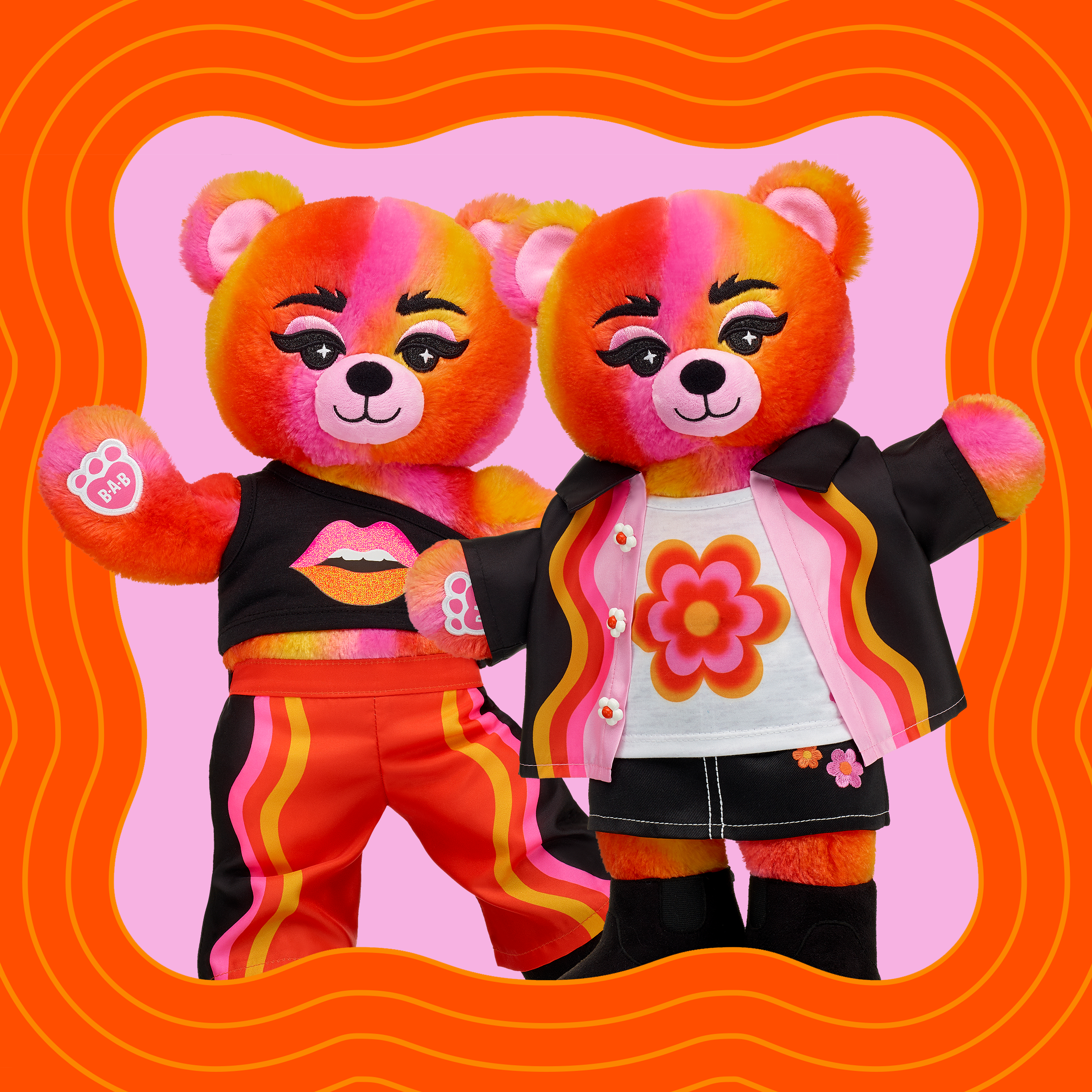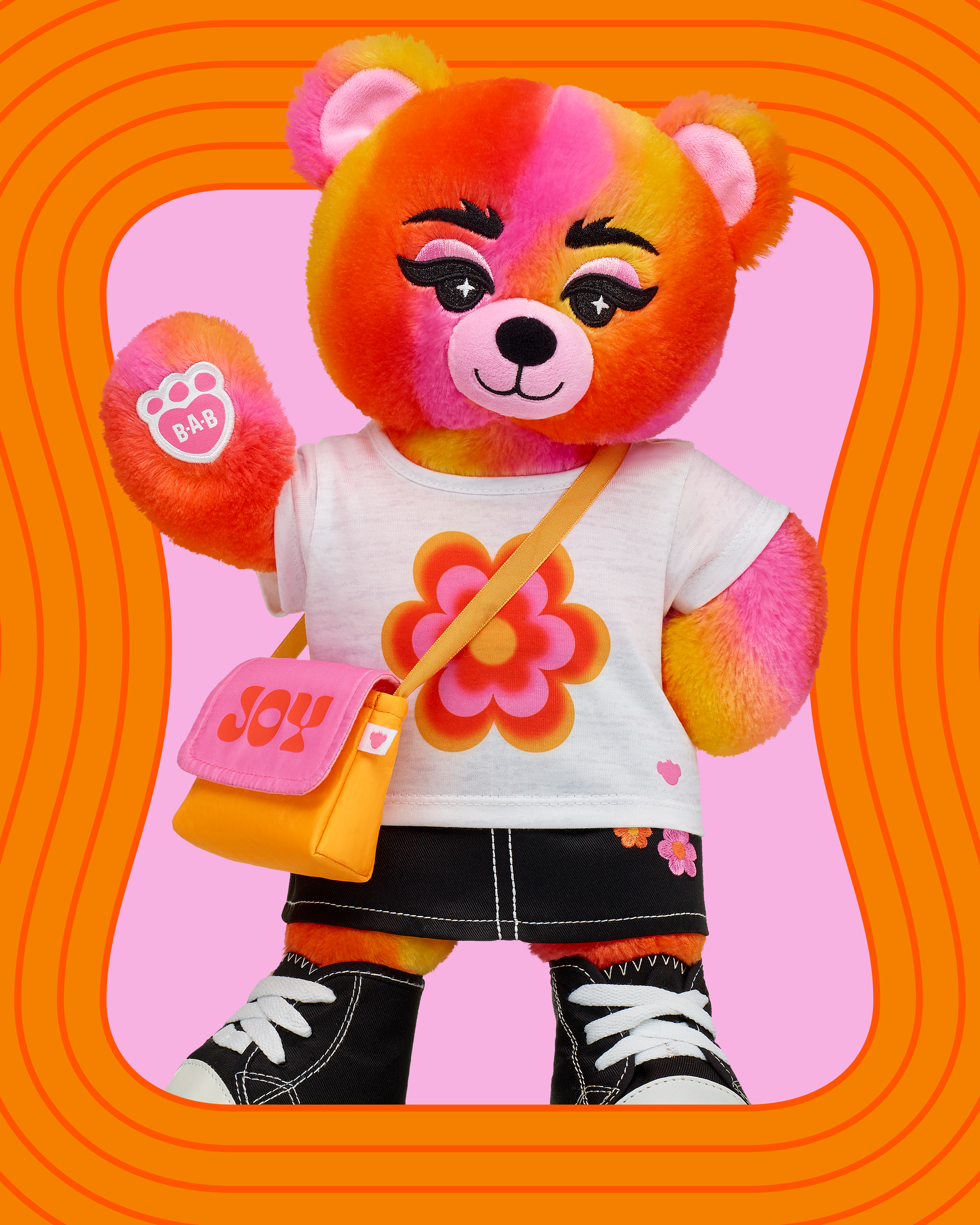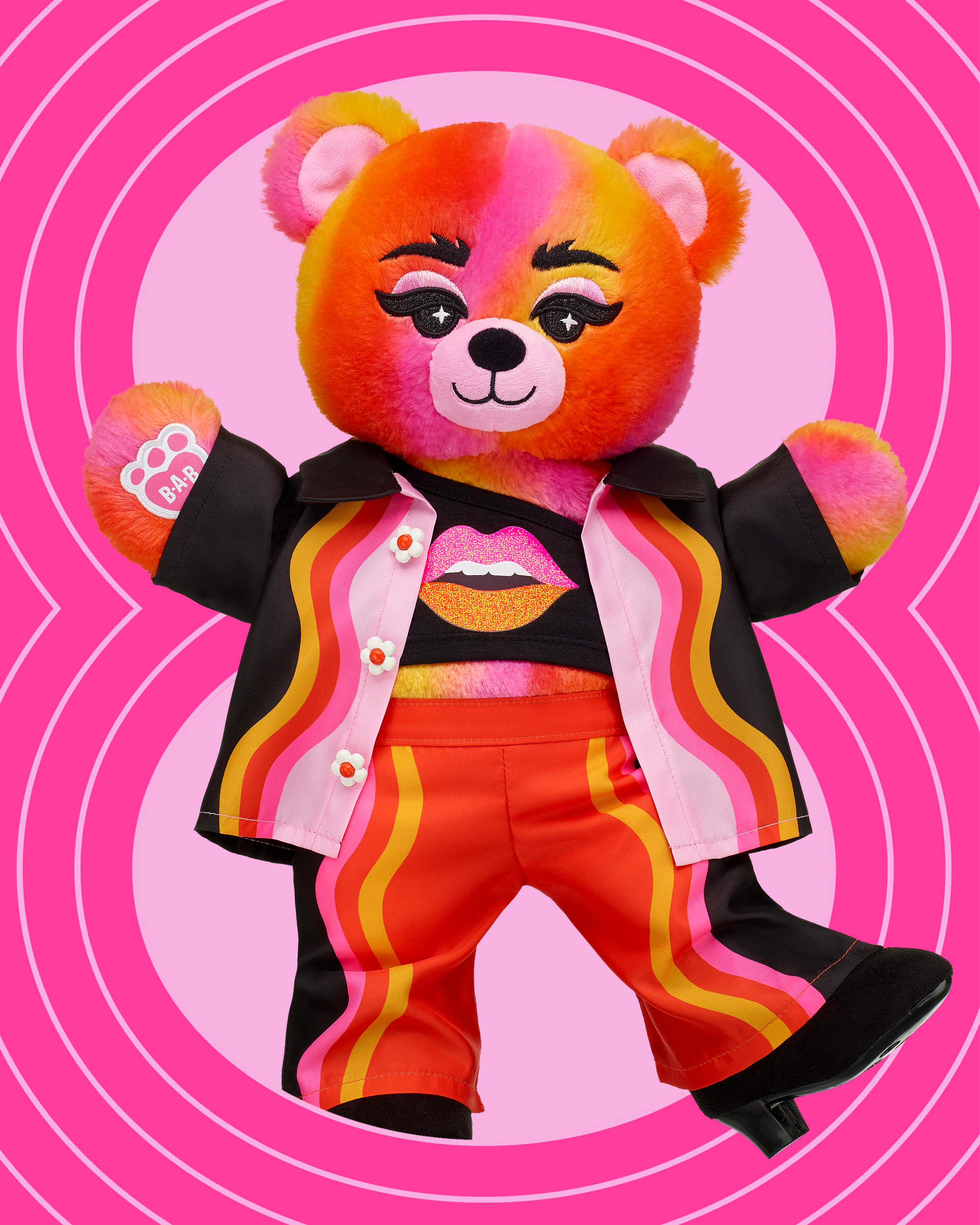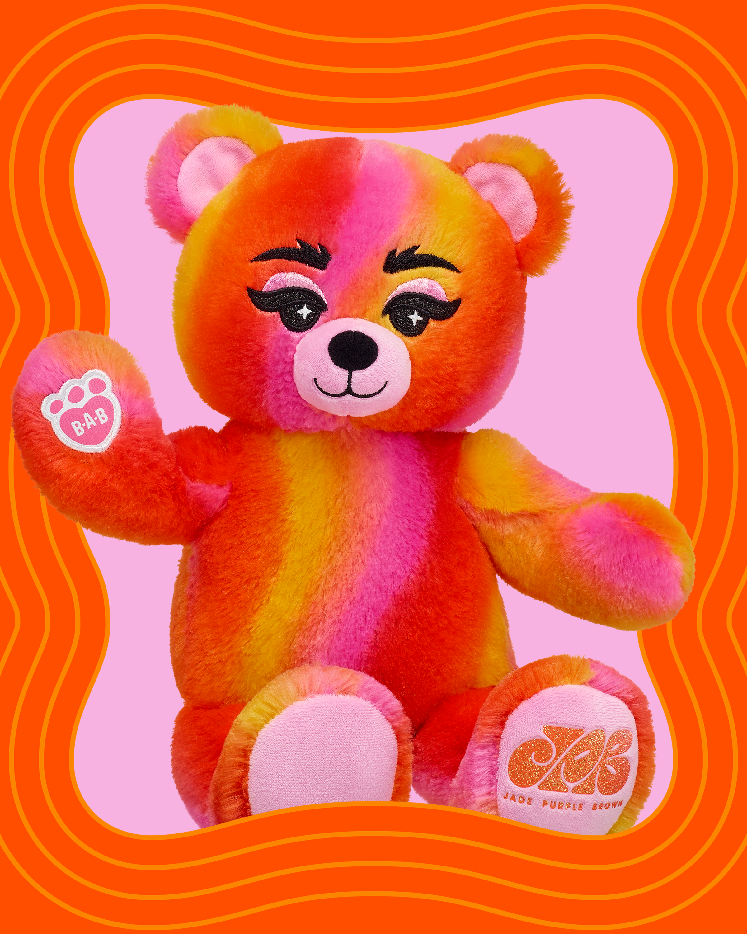 Explore the dynamic world of artist Jade Purple Brown with the limited edition, Vibe Out Bear! This Jade Purple Brown gift set includes this groovy teddy bear sporting its own Jade Purple Brown tank, daisy jacket, matching flared pants and black boots. This one-of-a-kind collectible is perfect for adding some joy to your daily life.