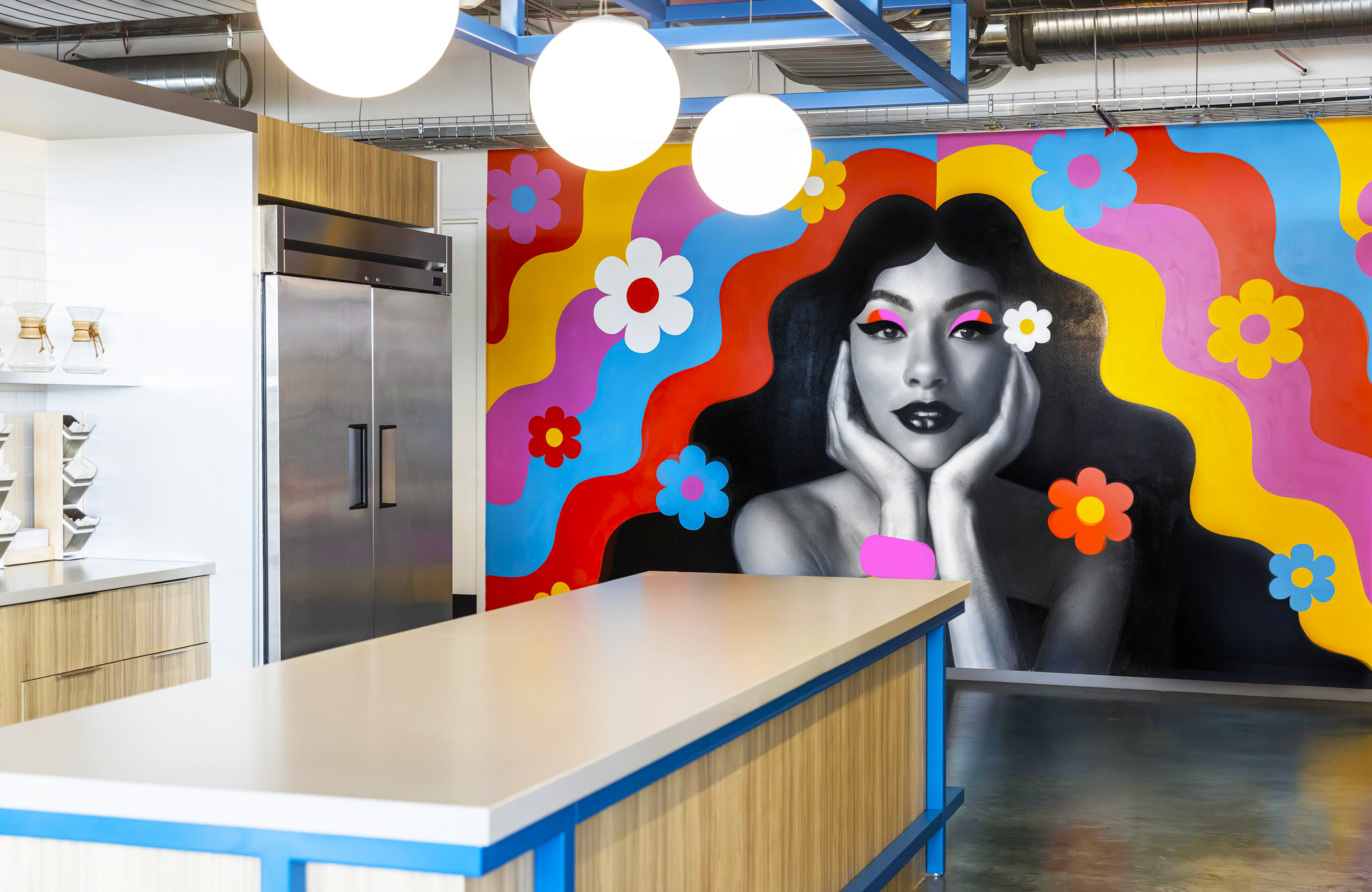 Mural design for the Mailchimp headquarters located in Atlanta, Georgia. The 16x9 foot mural is based on JPB's mixed media piece"Brighter Days Ahead", merging photography with digital illustration.