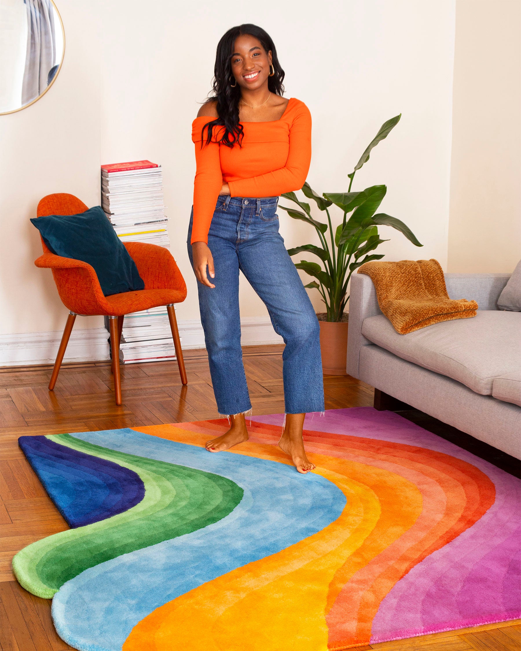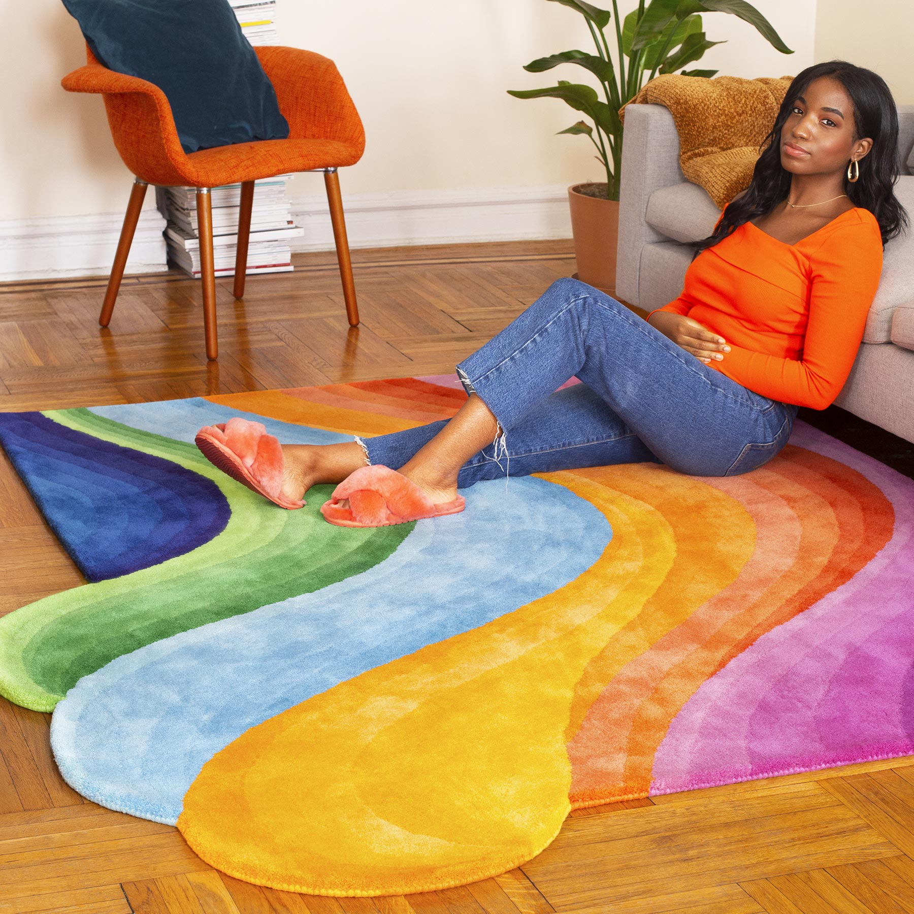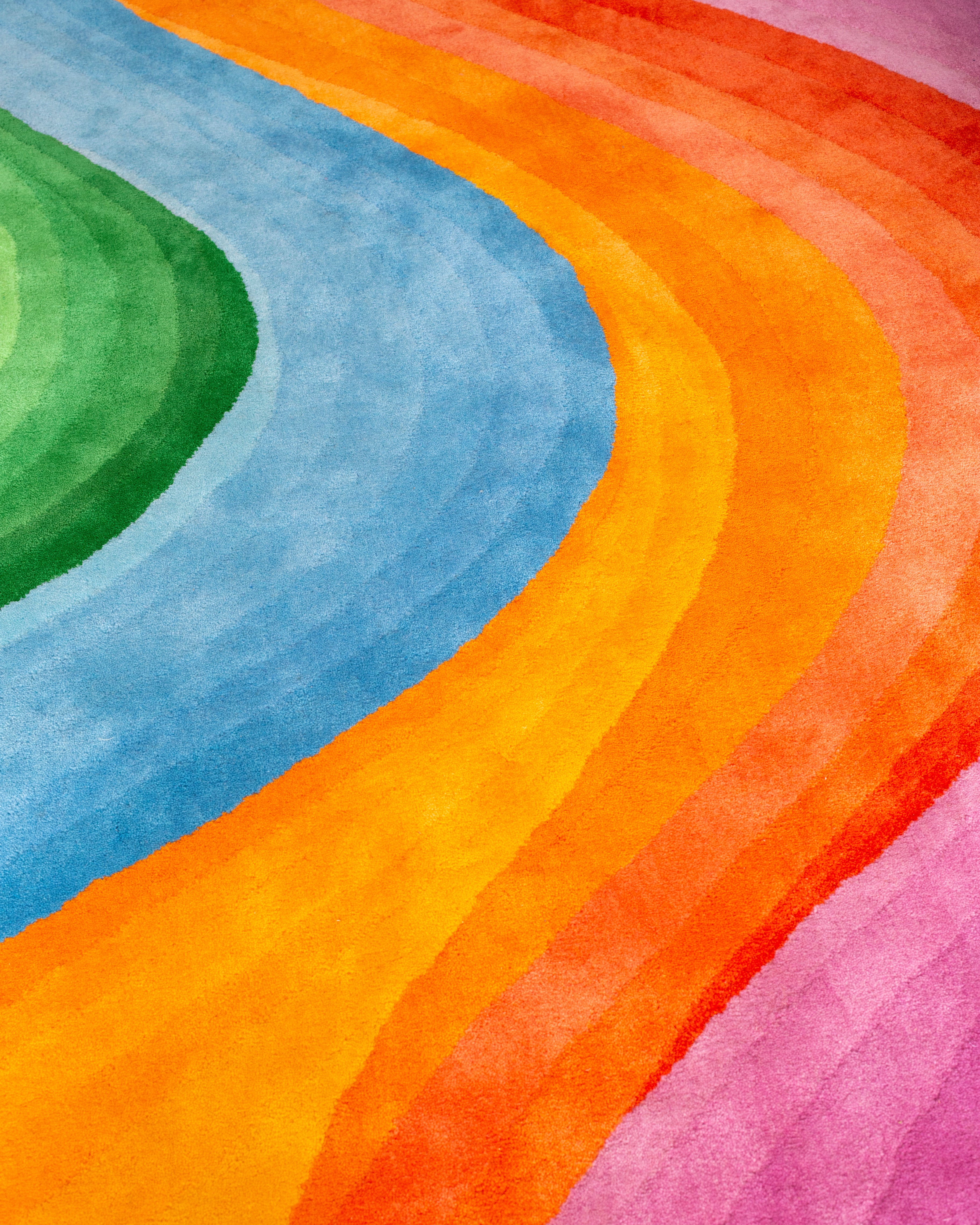 The Wave rug is a collaboration with London-based designer Sonya Winner. It celebrates our mutual love for color and bold graphic shapes and is inspired by the 1970s. The Handmade rug features radiant colors and fluid curves that surpass establishing borders, making it easy to transform any space. The Wave Rug is currently available for purchase.